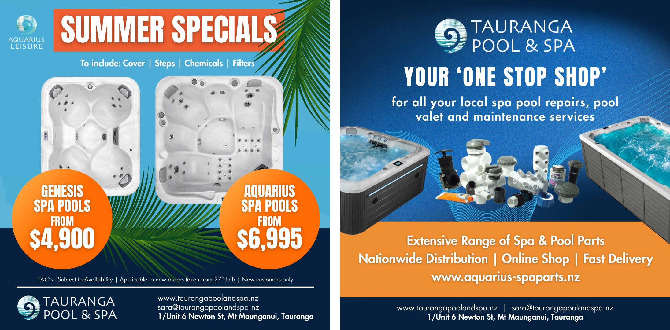 Shortly after launching TPS, we quickly realised that there was a gap in the pool & spa parts markets for repairs and parts, so we decided to set up two subsidiary companies: Aquarius Spa Parts (www.aquarius-spaparts.nz) & (www.aquarius-poolparts.nz). Our aim is to lead the way with supplying spa & pool parts for both trade and retail, throughout the whole of New Zealand. We have a huge range oof product lines, which continues to grow on a daily basis. From jets and heaters to plumbing supplies and heat pumps and so much more. We can supply any part for the majority of brands, and if we don’t have a part in stock, we will endeavour to do our best to deliver it to you within a specified time. We can also provide technical support and in-house spa and pool repairs (if local).